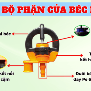 - Chất liệu: Béc tưới MK39 được làm từ nhựa ABS, chịu nhiệt tốt.