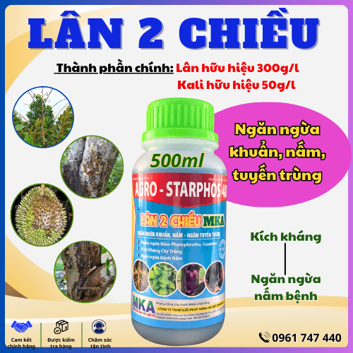 Ngoài ra, Lân 2 chiều MKA còn có khả năng kích kháng cao với thành phần là Photphonate, và có thể sử dụng trong hầu hết các giai đoạn của cây trồng như nhú mầm hoa, phát triển mầm, trước xổ nhụy, đậu trái non và phát triển trái